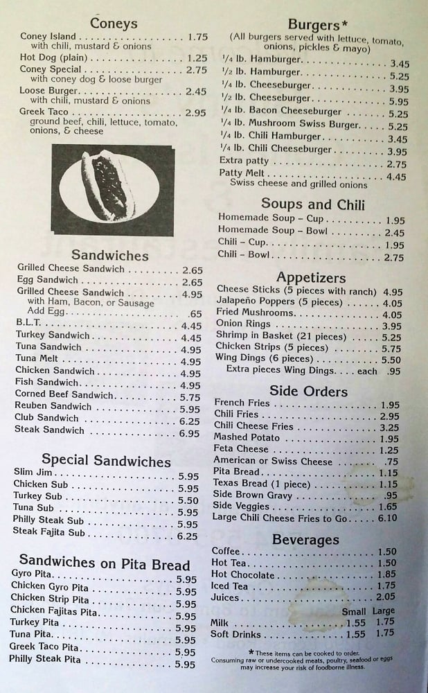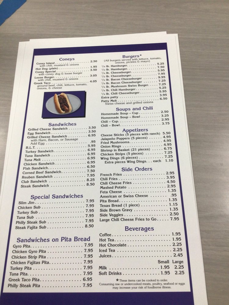 Sunnys Coney Island Menu